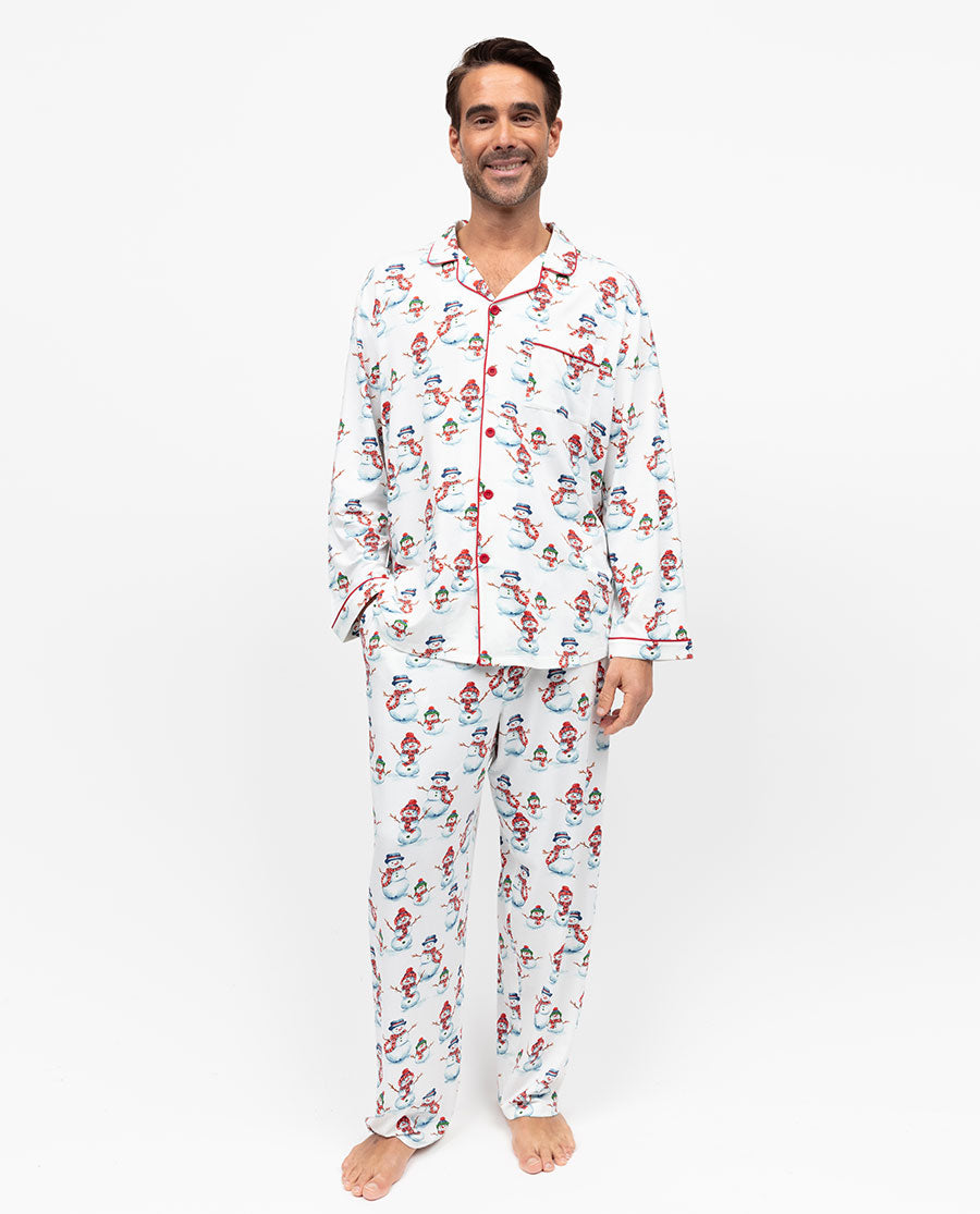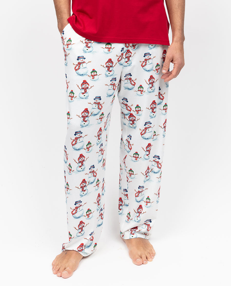 We think it's the extra details that makes your sleepwear feel so comfy. Our Blaze Mens Red Mix Snowman Printed Jersey Pyjama Bottoms are laden with details to make sure your lounging is laidback throughout the whole winter season. As it’s crafted from a soft blend of 52% cotton, 41% modal, and 7% elastane, these pyjama bottoms are practically built to take on the early morning stretches and the lounging sessions on the sofa that you never want to end. Printed with a scene of gentlemanly charming snowmen against a snow white canvas, these really are the pyjama bottoms for injecting the magic of the festive season into your downtime. Getting on to the details: A fully elasticated waist and red twill drawstring keeps the fit neat, a practical fly and buttons keep them structured, and two side pockets keep hands toasty during the winter’s chill. With straight hems keeping the shape clean, these are the kind of pyjama bottoms you'll want to wear all season and beyond.