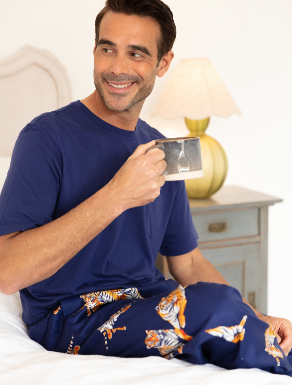 Bringen Sie einen Safari-inspirierten Stil in Ihre Loungewear, ohne auf Komfort zu verzichten, mit der Georgina Womens Cream Mix Giraffe Print Wide Leg Pyjamahose. Diese Pyjamahose besteht aus einem superweichen Mix aus 60 % Baumwolle und 40 % Modal und fühlt sich so traumhaft an, wie sie aussieht. Das verspielte Giraffenmuster hebt sich vom cremefarbenen Stoff ab und bringt einen Hauch von Verspieltheit in Ihre Nachtgarderobe. Diese Hose mit elastischem Bund hinten und flacher Vorderseite sorgt für eine schmeichelhafte, bequeme Passform. Der verstellbare Kordelzug vorne ermöglicht eine individuelle Passform, während zwei praktische Seitentaschen praktisch sind, ohne dass Sie auf Stil verzichten müssen. Mit einem weiteren Bein und geraden Bündchensäumen bietet diese Hose eine entspannte und dennoch elegante Silhouette. Kombinieren Sie sie mit dem passenden Pyjamaoberteil, um ein abgestimmtes Set zu erstellen, das perfekt für gemütliche Abende oder entspannte Morgen ist.
