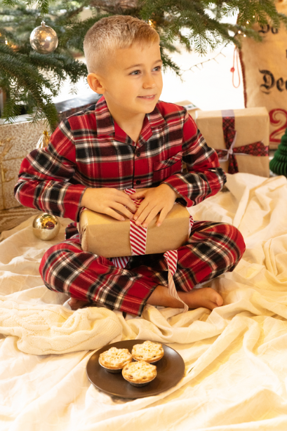 Machen Sie es sich dieses Weihnachten als Familie gemütlich mit unseren passenden festlichen Pyjamas, die jeder lieben wird! Unsere Riley-Pyjamas mit Kugeldruck bestehen aus superweichem 60 % Baumwolle und 40 % Modal und sind in unseren Damen-, Herren-, Mädchen- und Jungenkollektionen erhältlich. Die Hose ist mit marineblauem Modal besetzt und hat einen Gummizug an der hinteren Taille mit einem verstellbaren Kordelzug vorne und zwei Seitentaschen (so bequem, dass Sie sie nicht mehr ausziehen möchten). Tragen Sie sie mit dem passenden Pyjama-Oberteil vor dem Schlafengehen oder kombinieren Sie sie mit unserem lässigen Jersey-Oberteil für gemütliches Faulenzen an faulen Weihnachtsmorgen.