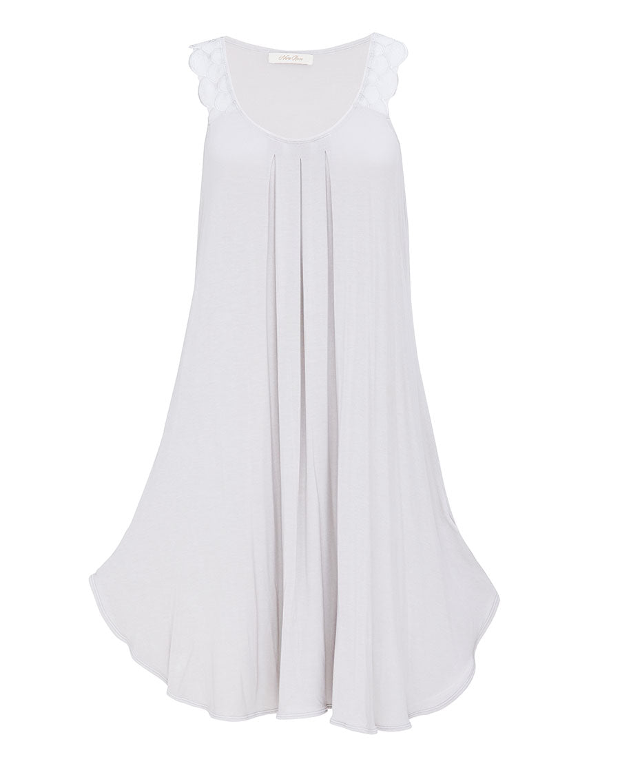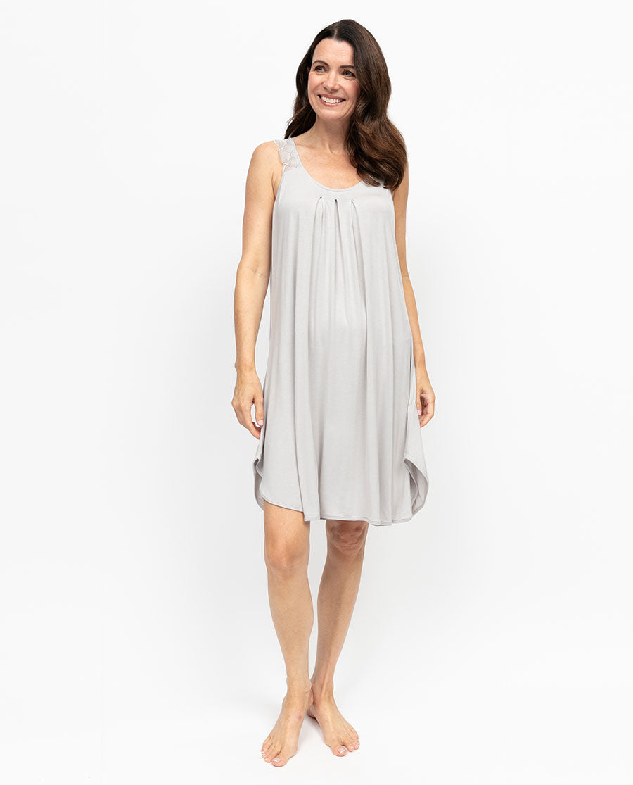 Give your downtime an upgrade, with nightwear that understands that unwinding is all about how we feel when we’re in the midst of it. Our Willow Jersey Swing Nightdress combines extra soft fabrics with a playful fit to make sure you’re feeling comfy and calm during those hours after hours. Our sleep fabric supreme, made softer, smoother, and more indulgent, this nightdress is cut from a 95% modal, 5% elastane blend to give it that extra-kind-on-the-skin feel finished with a light stretch. We’ve added a grey modal piping along the neckline to soften the seams, and a delicate scalloped lace at the shoulders to give this playful nightdress its own sense of charm in the form of an intricate texture.Wide, built-up shoulders hold everything beautifully in place, while the rounded neckline frames the face beautifully without confining. Pleated and with a shaped bottom hem, this nightdress has a generous and flattering fit - the kind of nightdress that makes you want to move just to feel how it responds. Indulgent in ways that matter