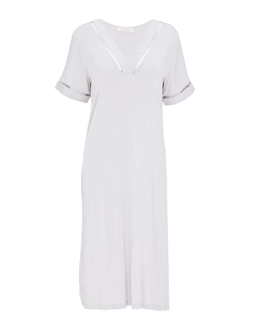 Give your evenings the attention they deserve with nightwear that knows that feeling put together during your downtime shouldn’t be a stiff or serious affair, but a comfy and breathable one. Our Willow Insert Lace Detail Jersey Nightdress combines luxurious softness with a playful and flattering silhouette to make sure you’re owning your evenings like you should. Cut from a 95% modal, 5% elastane blend, this nightdress gives you that evening-friendly extra-kind-on-the-skin feel, and is lightly stretch-infused. With a grey modal piping to soften the V-shaped neckline and added texture as a result of the circular lace inserts at the neckline and sleeves, this is sleepwear with soul.Short-sleeved and slightly shorter in length, this nightdress offers coverage where it’s needed but still feels light with its flattening fit. Whether worn under a dressing gown or on its own, this is a playful and indulgent piece to give your evenings the attention they deserve.