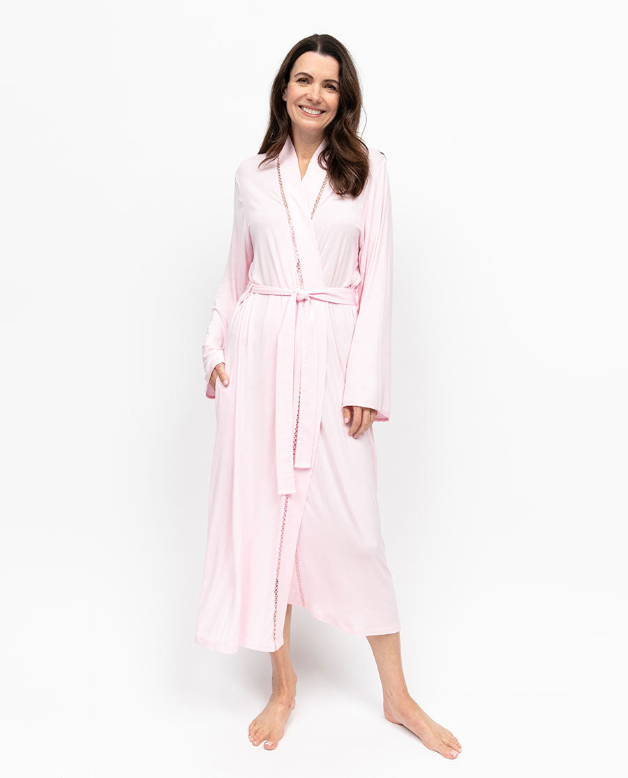 Samantha Womens Lace Detail Jersey Long Dressing Gown