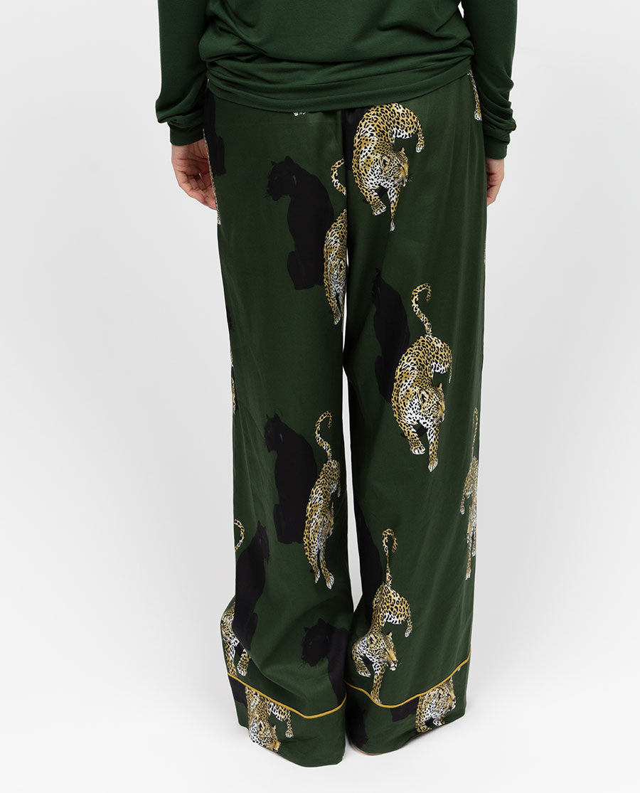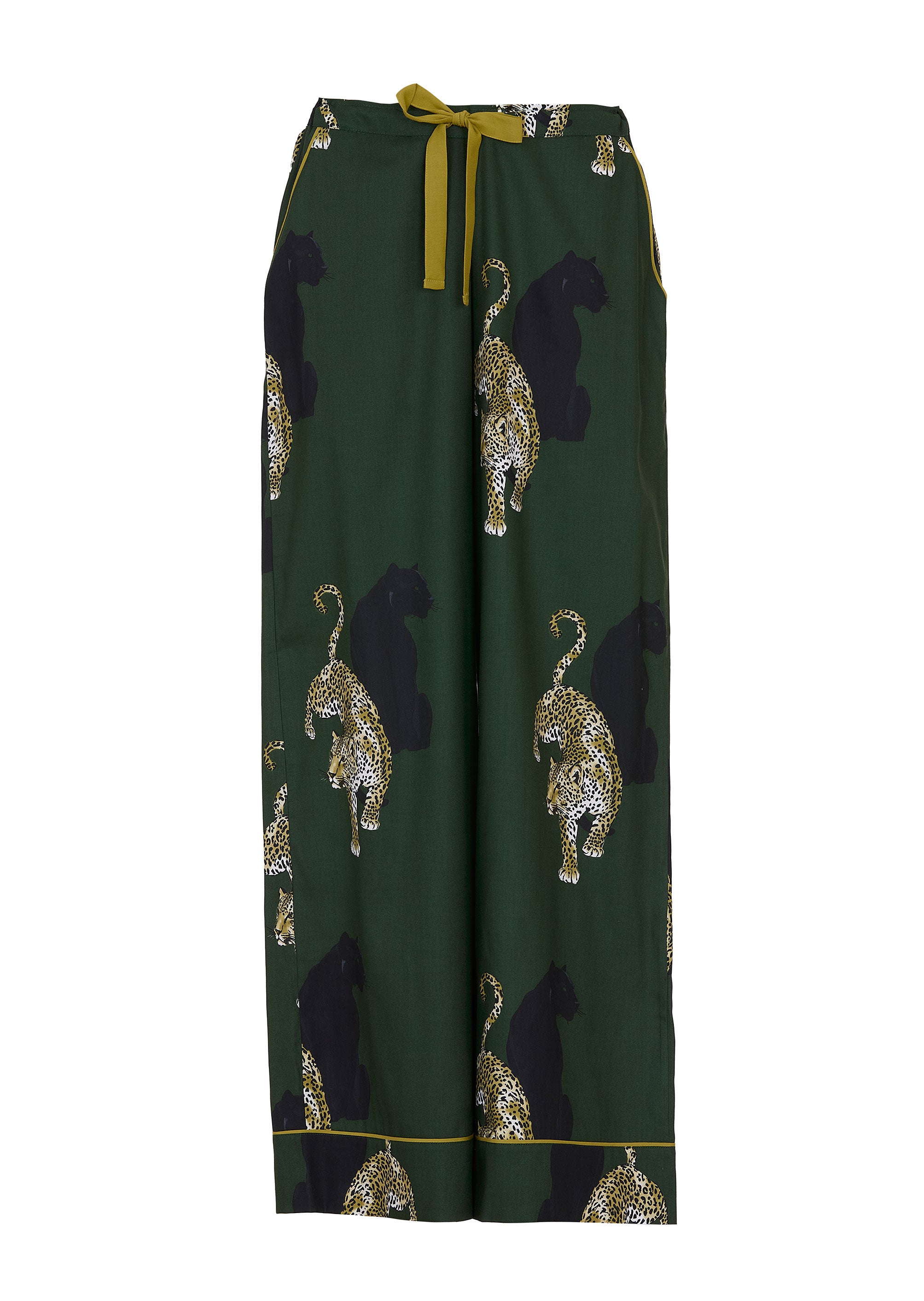 Olive Womens Leopard Print Wide Leg Pyjama Bottoms