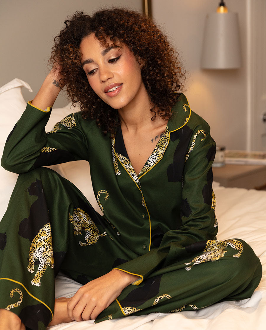 Olive Womens Leopard Print Pyjama Top Olive Womens Leopard Print Pyjama Top