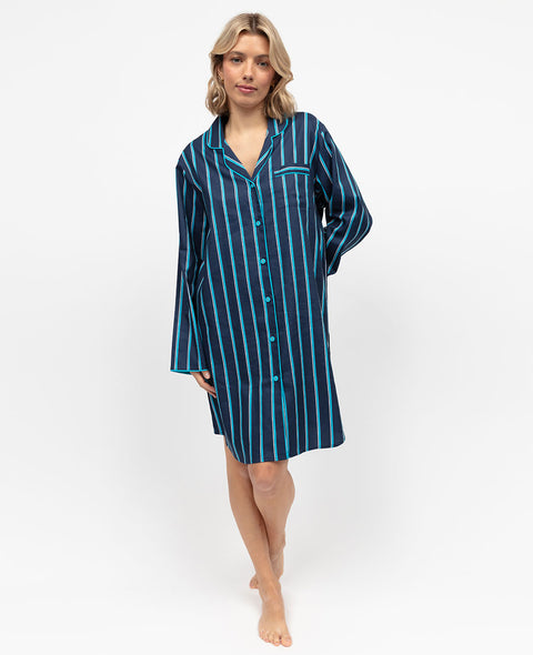 The Linen Edit Womens Blue Stripe Nightshirt The Linen Edit Womens Blue Stripe Nightshirt