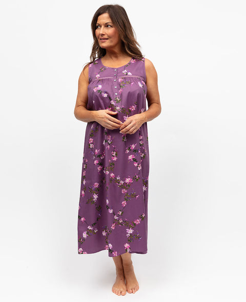 Lucy Womens Lace Detail Floral Print Long Nightdress