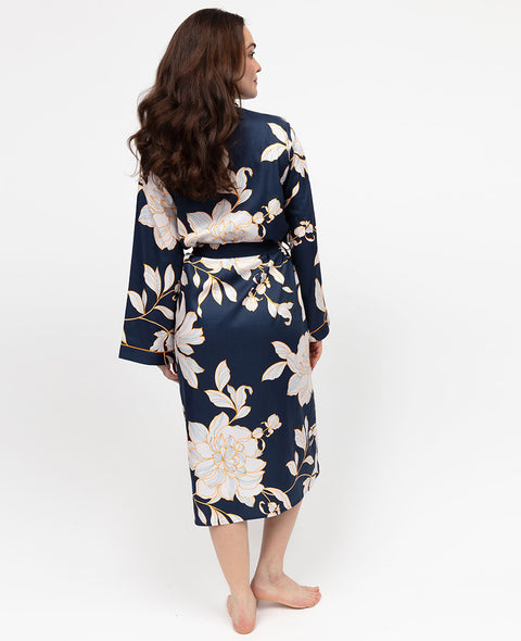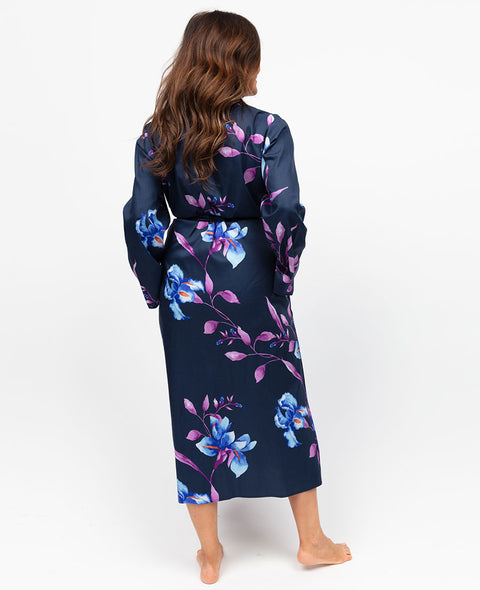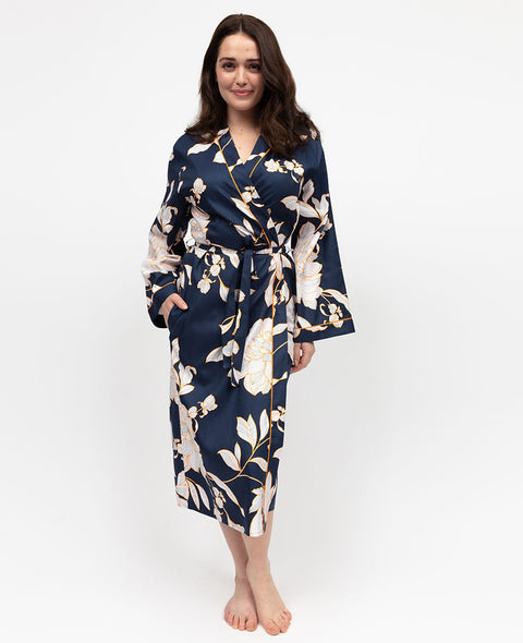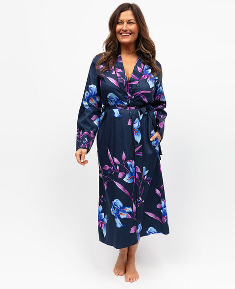 Indigo Womens Floral Print Long Dressing Gown Indigo Womens Floral Print Long Dressing Gown