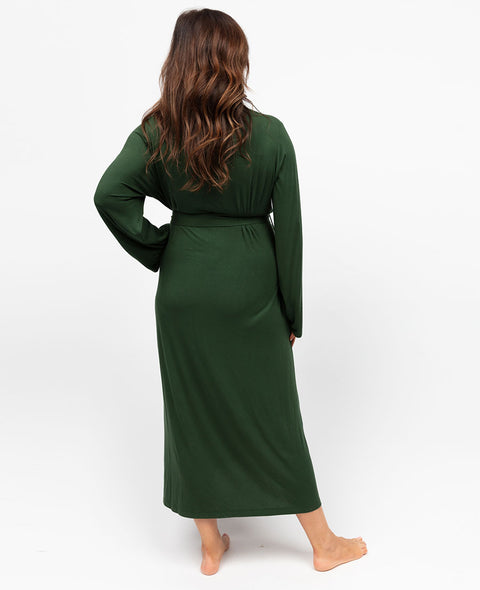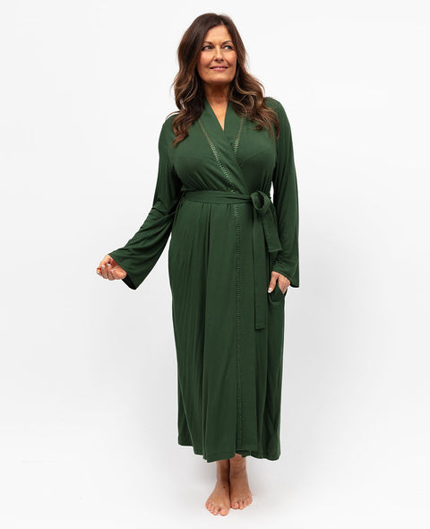 Olive Womens Jersey Long Dressing Gown