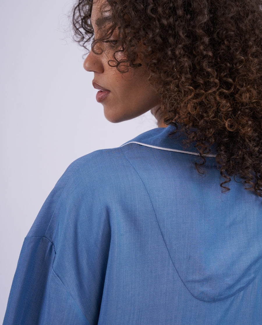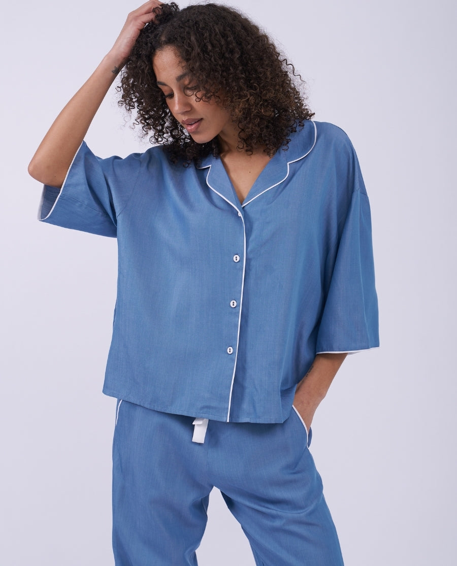 The Denim Edit Womens Chambray Relaxed Cropped Pyjama Set