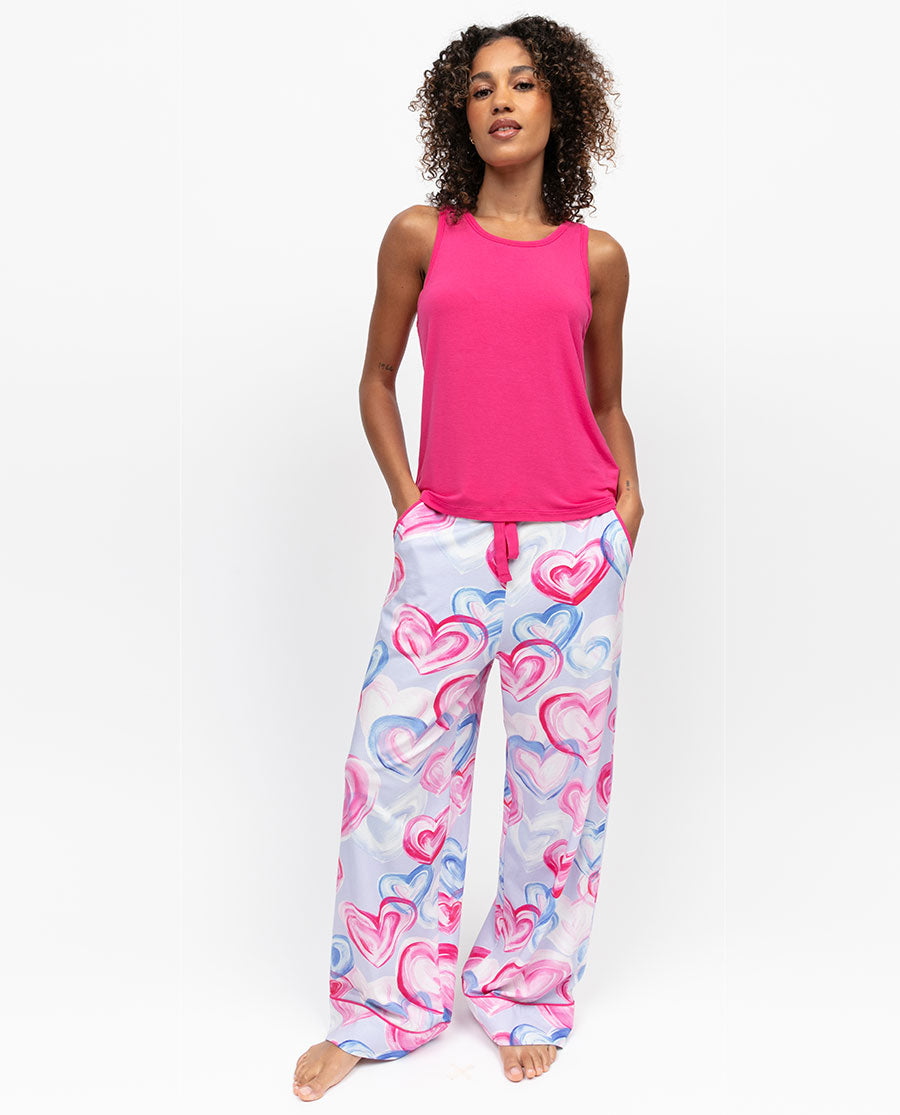 Chloe Womens Heart Printed Jersey Wide Leg Pyjama Bottoms