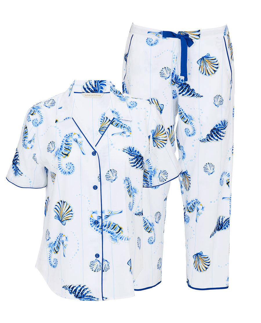 Essie Womens Seahorse Print Cropped Pyjama Set