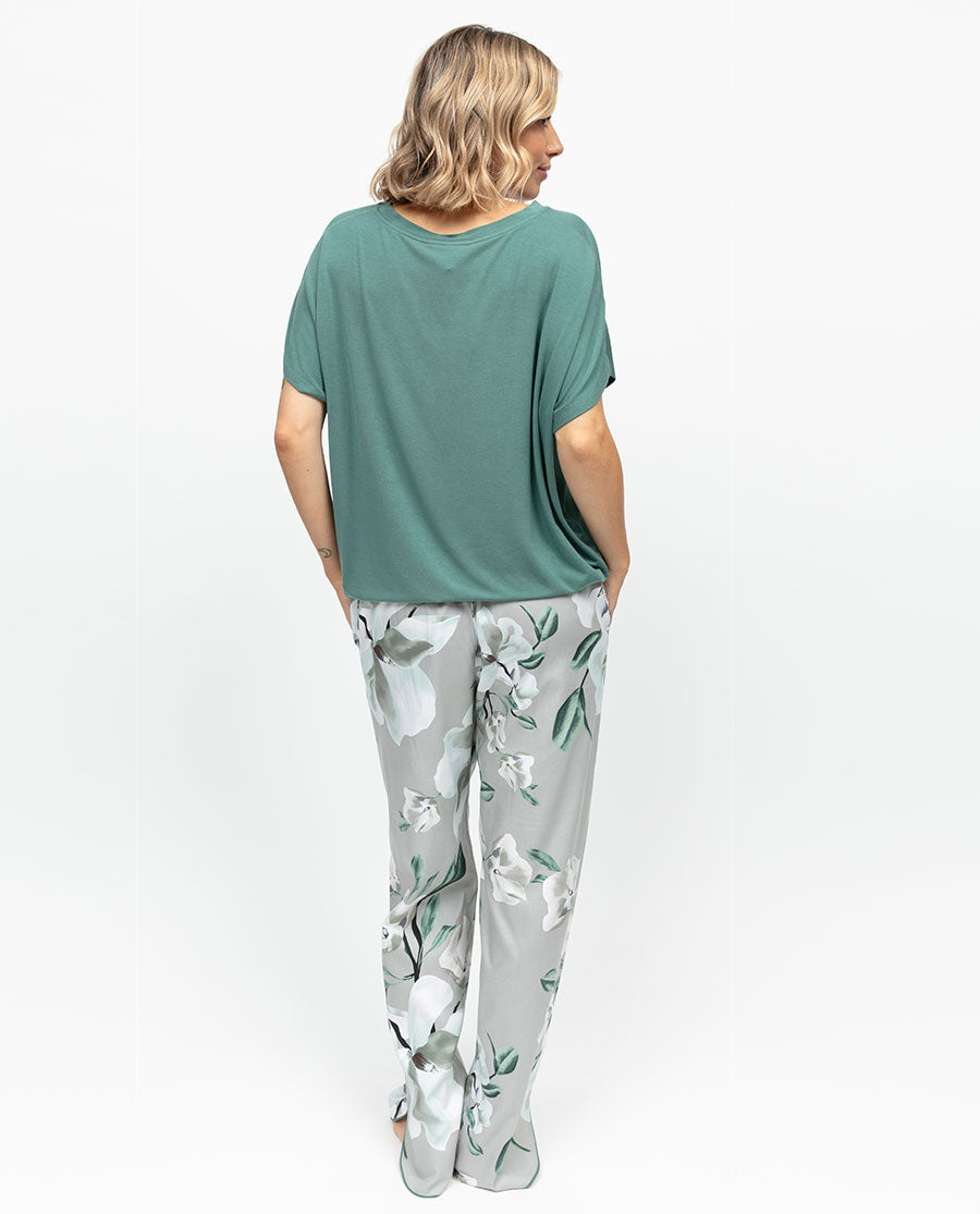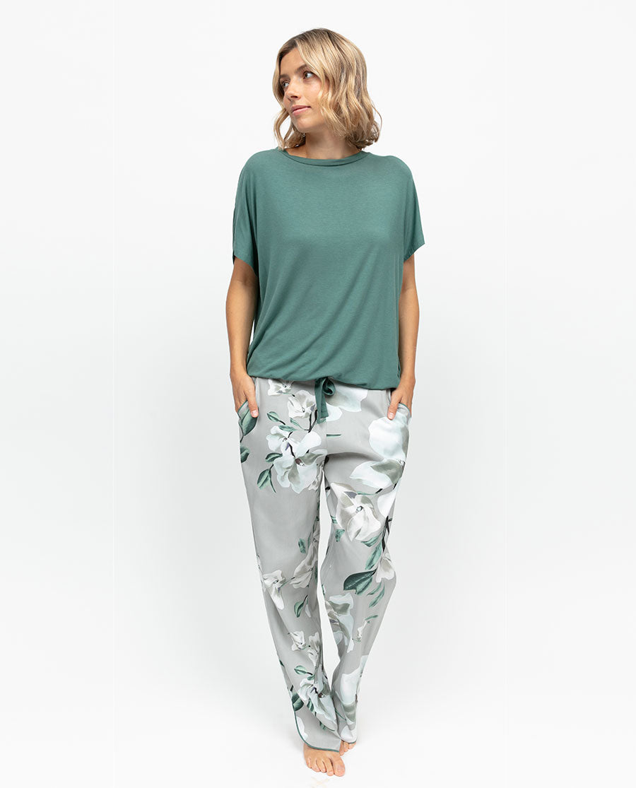 With an adjustable waist, two side pockets, seafoam green modal piping, and a matching drawstring, you're sure to be finding excuses to wear these pyjama bottoms no matter what your evening looks like.