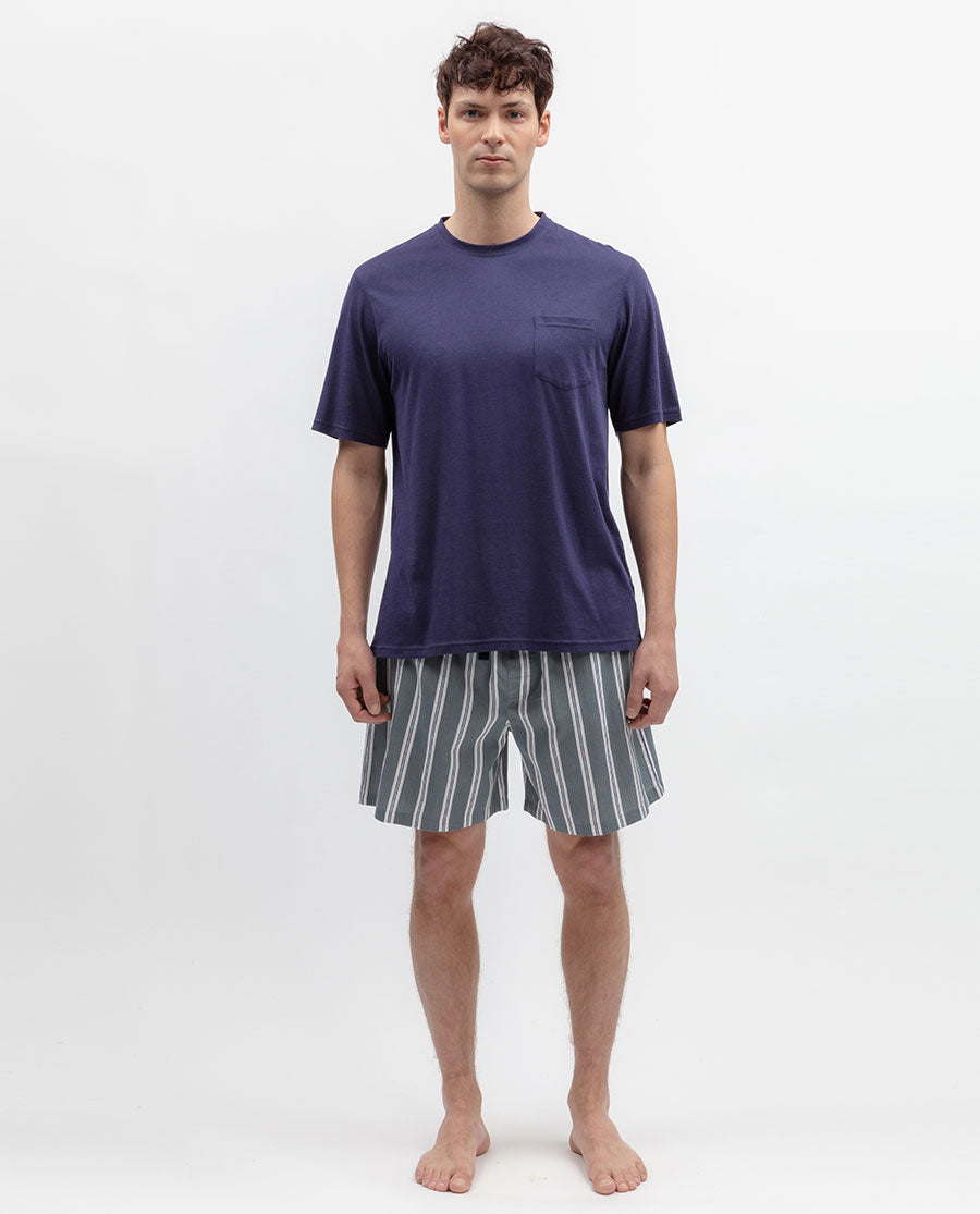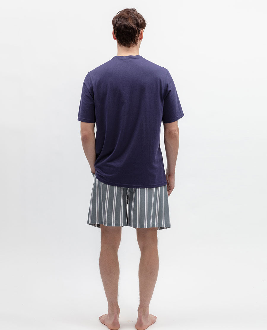 Classic stripes made in a modern sense of calm. These men’s striped pyjama shorts are a love letter to downtime, pairing a timeless grey and white stripe print with the softness of a cotton-modal fabric.
