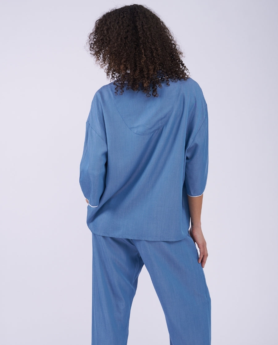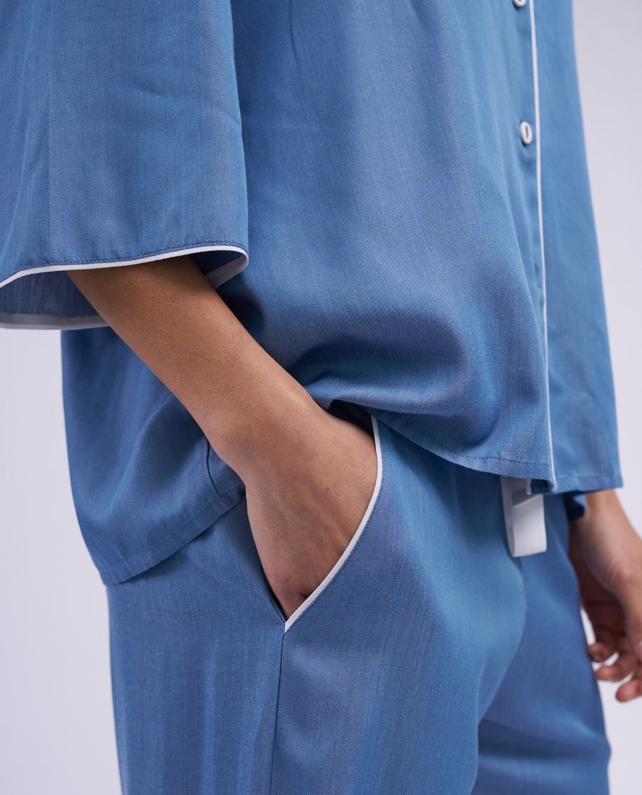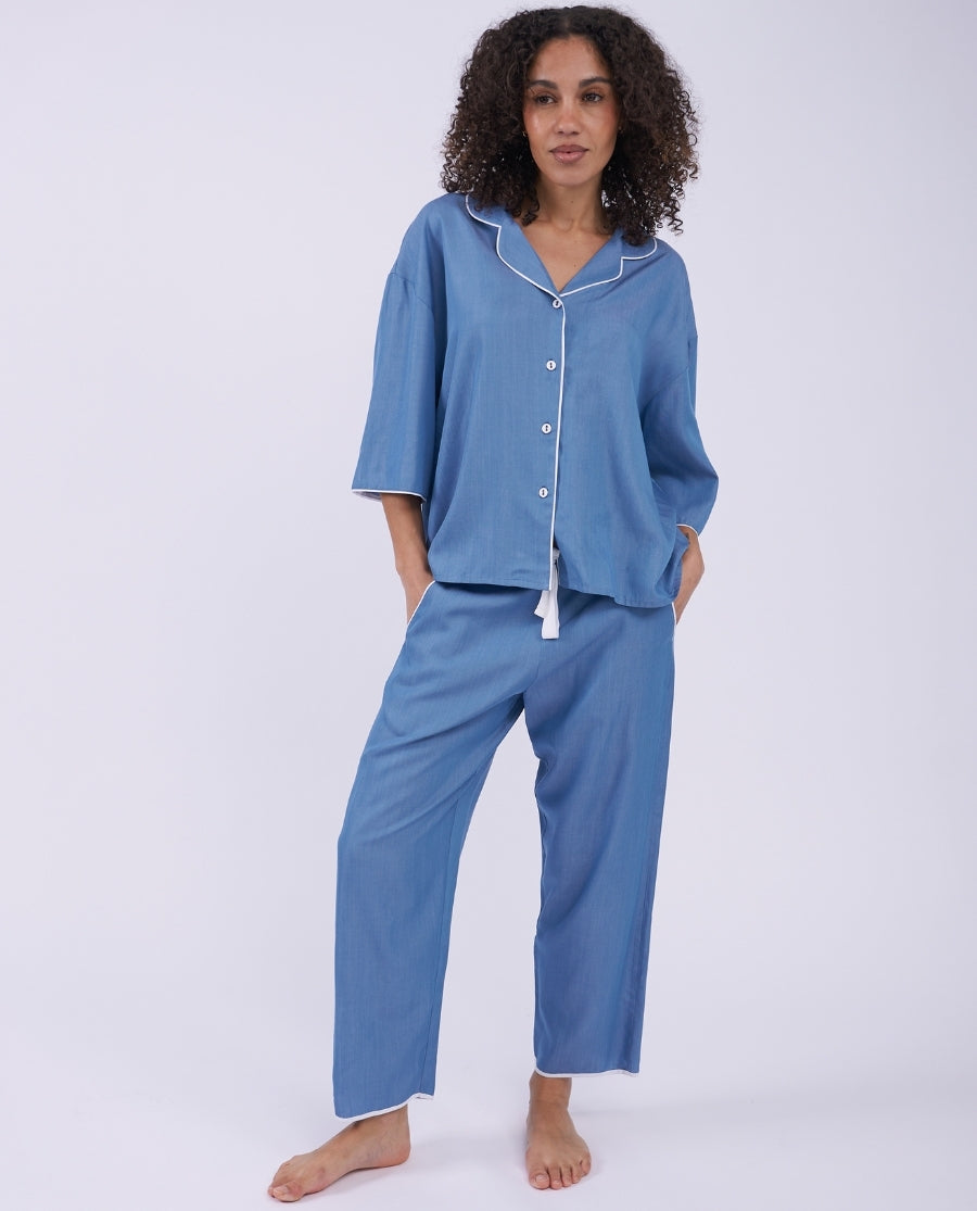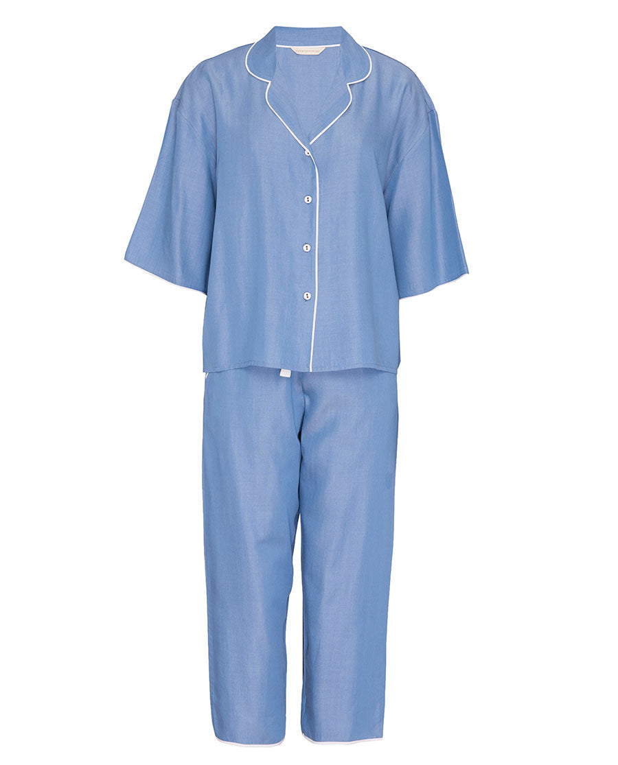 The Denim Edit Womens Chambray Relaxed Cropped Pyjama Set
